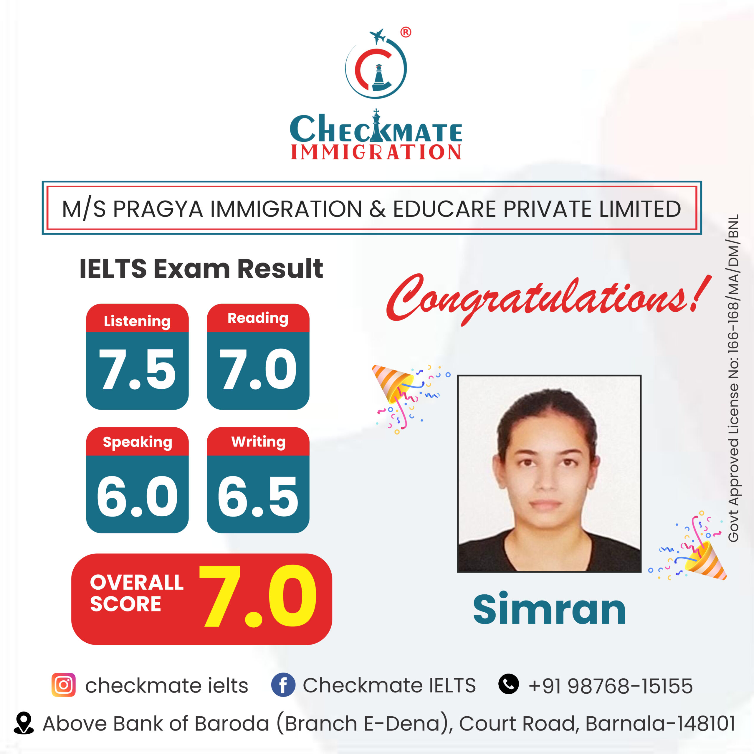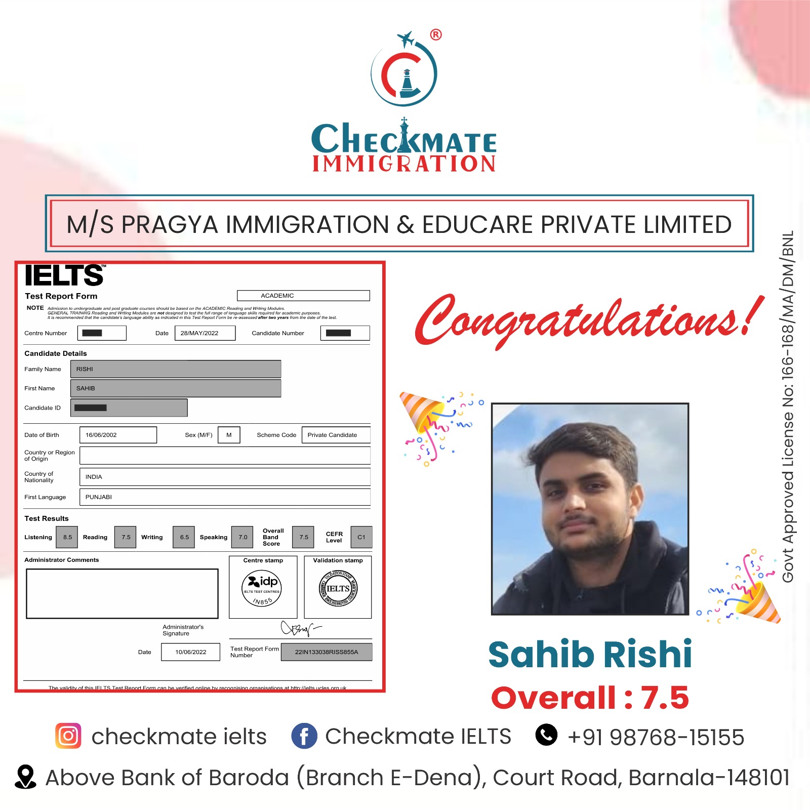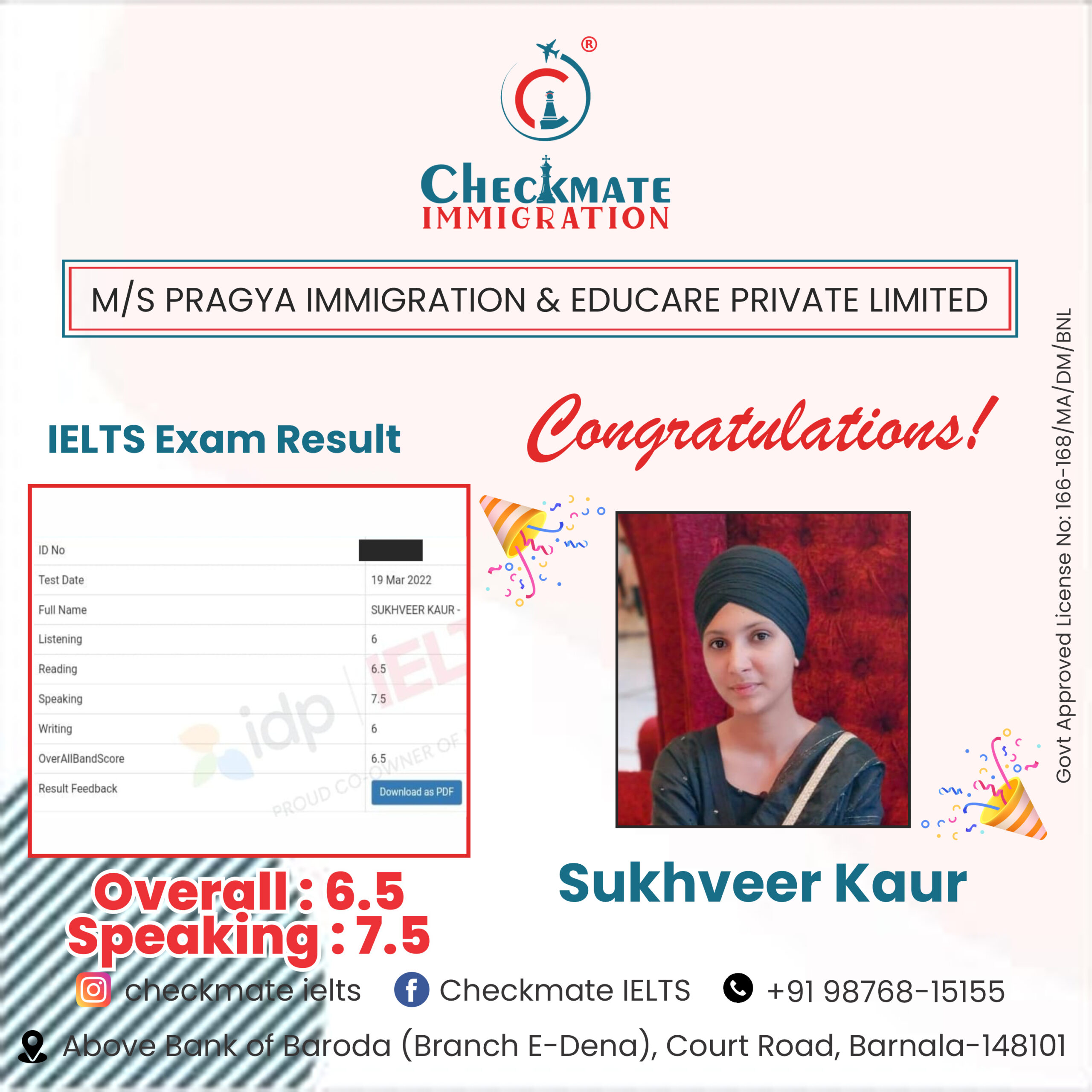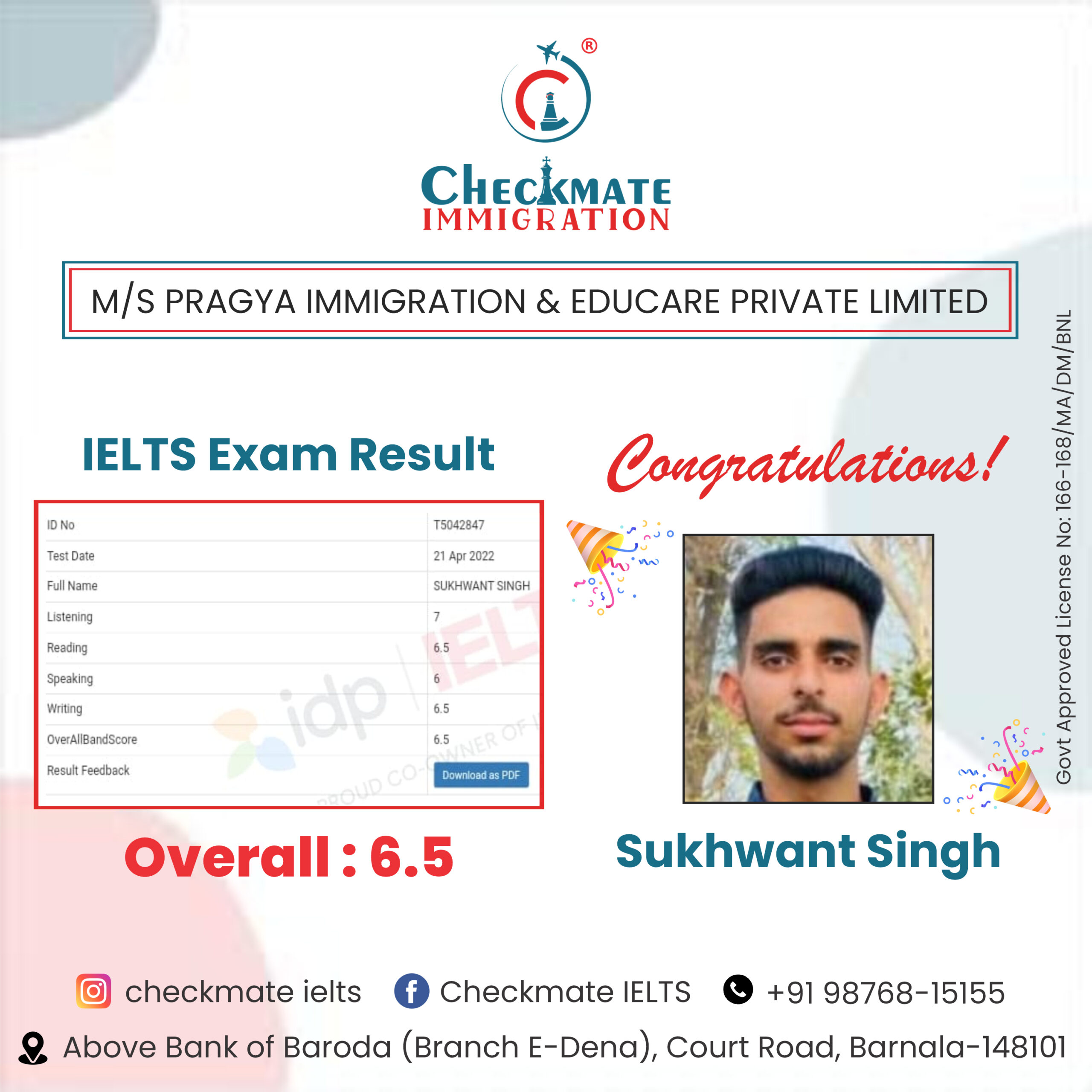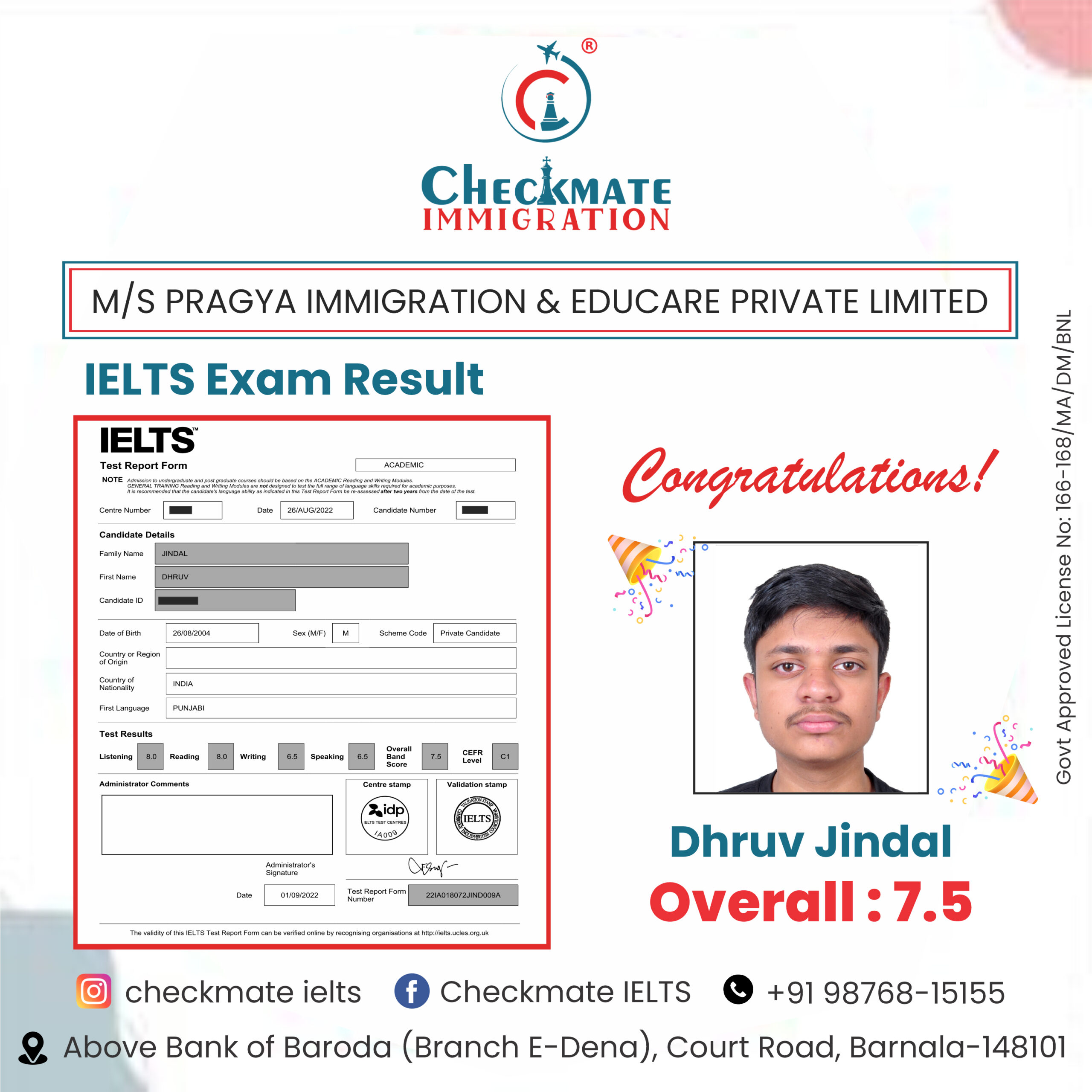 "Checkmate Immigration" is a registered trademark owned by our company. We are duly registered under the Punjab Travel Professional Regulation Act 2012 vide License No. 166-168. Further Govt of India, Department for Promotion of Industries and Internal Trade recognised us as Startup.