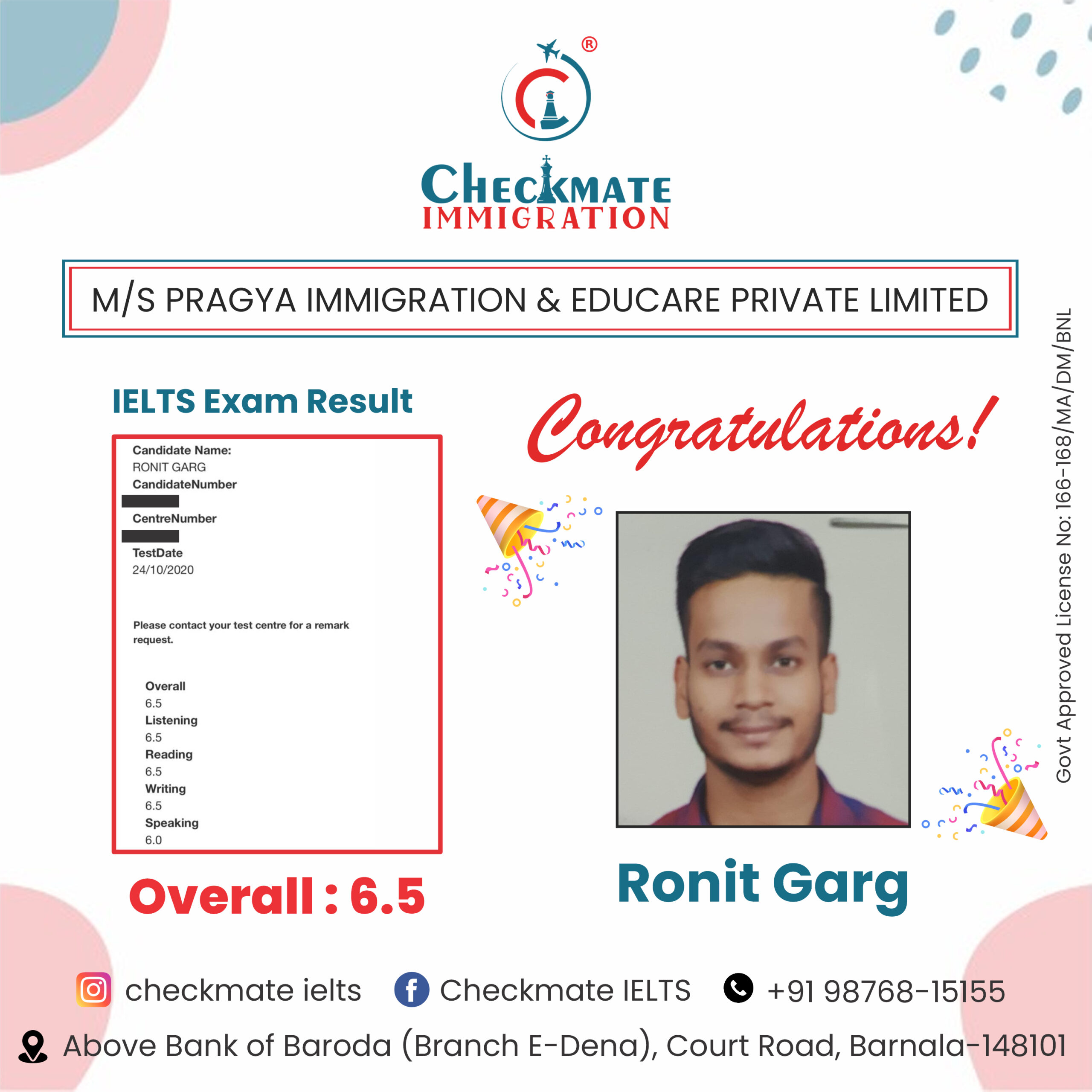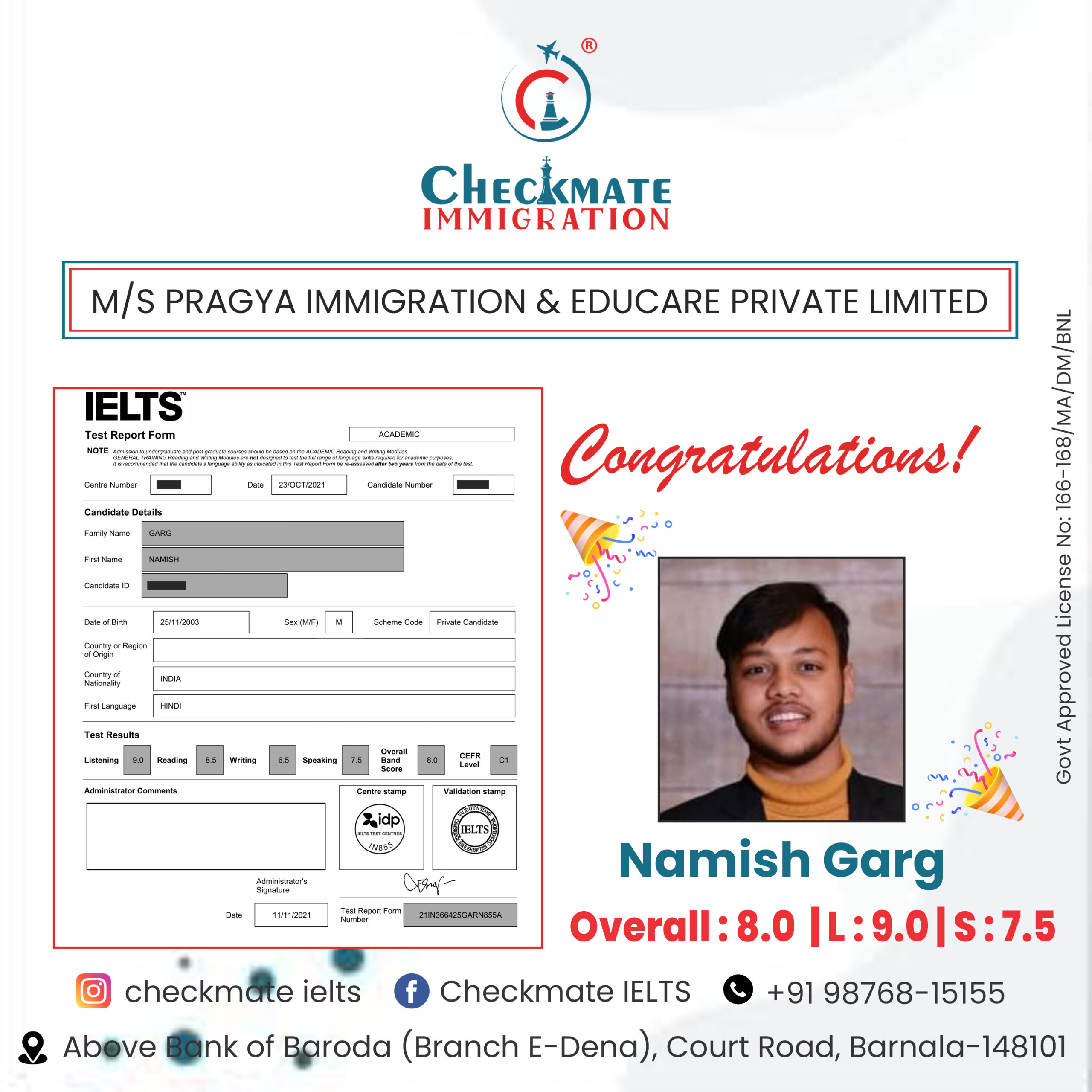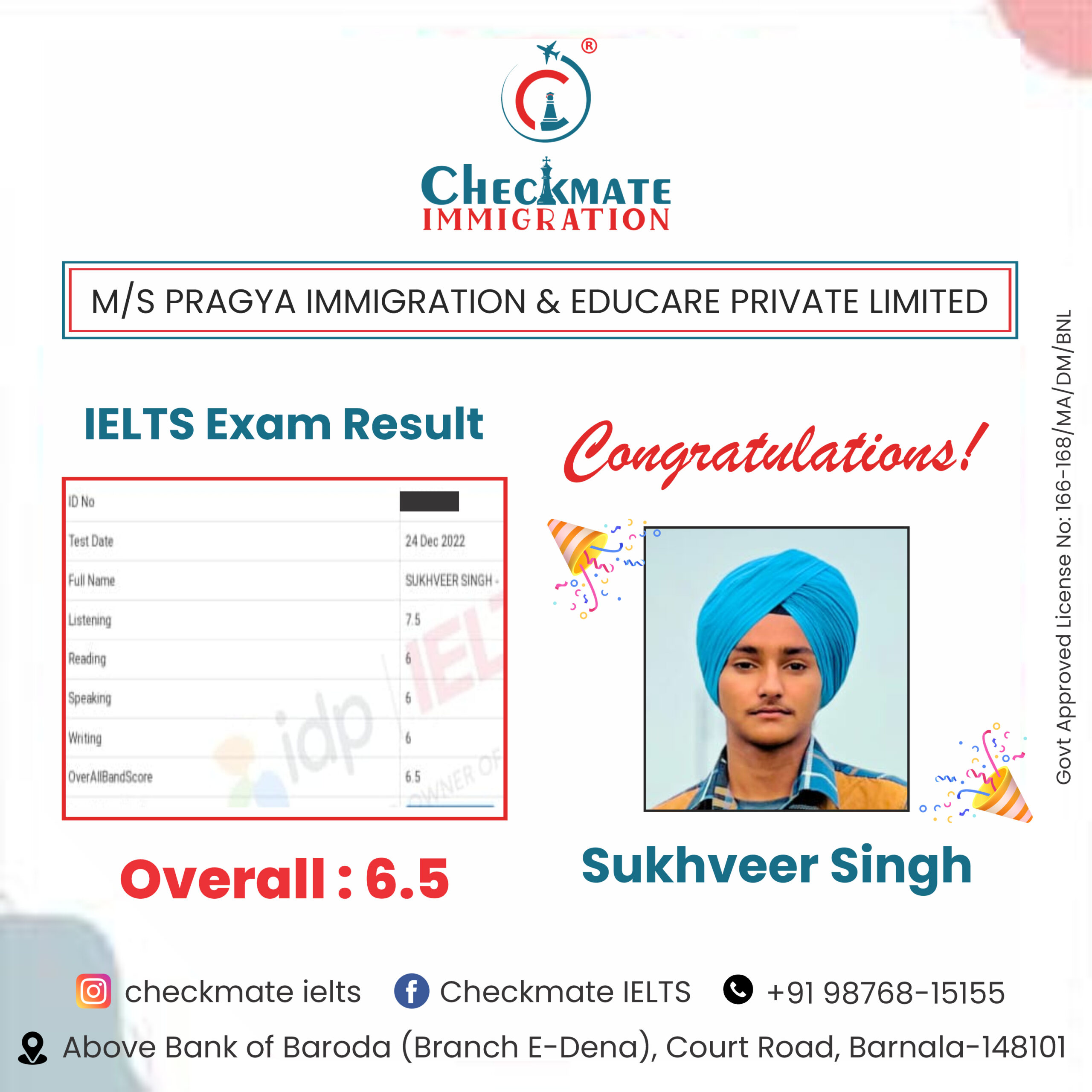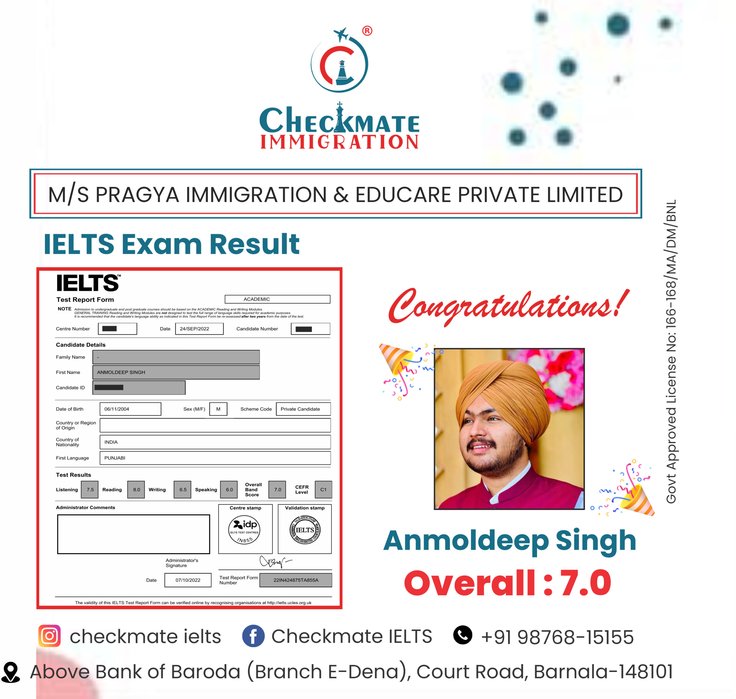 "Checkmate Immigration" is a registered trademark owned by our company. We are duly registered under the Punjab Travel Professional Regulation Act 2012 vide License No. 166-168. Further Govt of India, Department for Promotion of Industries and Internal Trade recognised us as Startup.