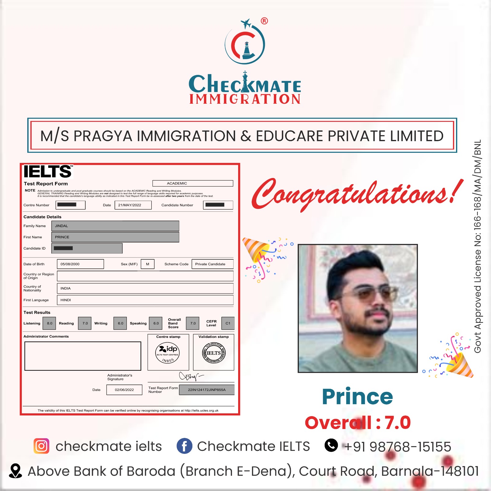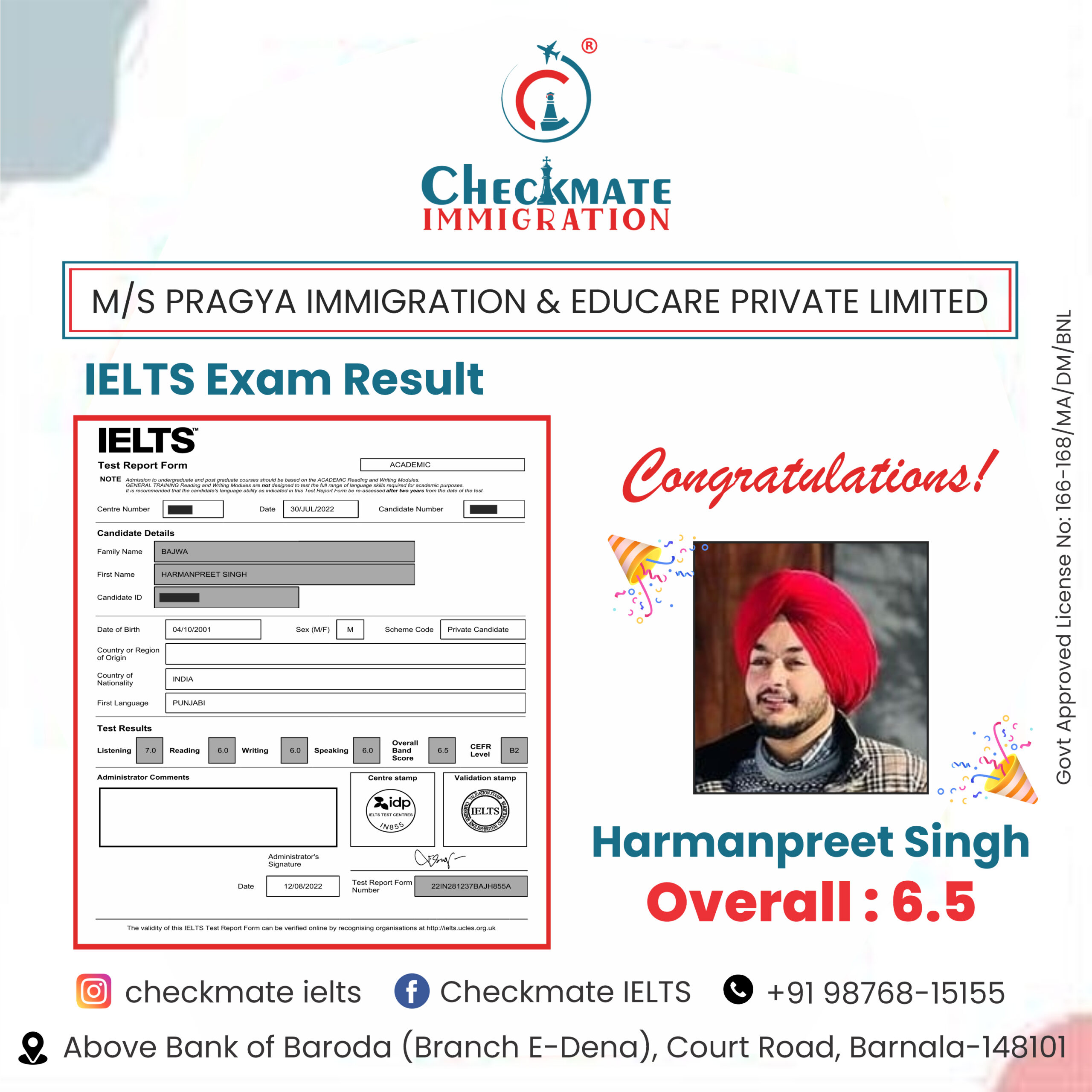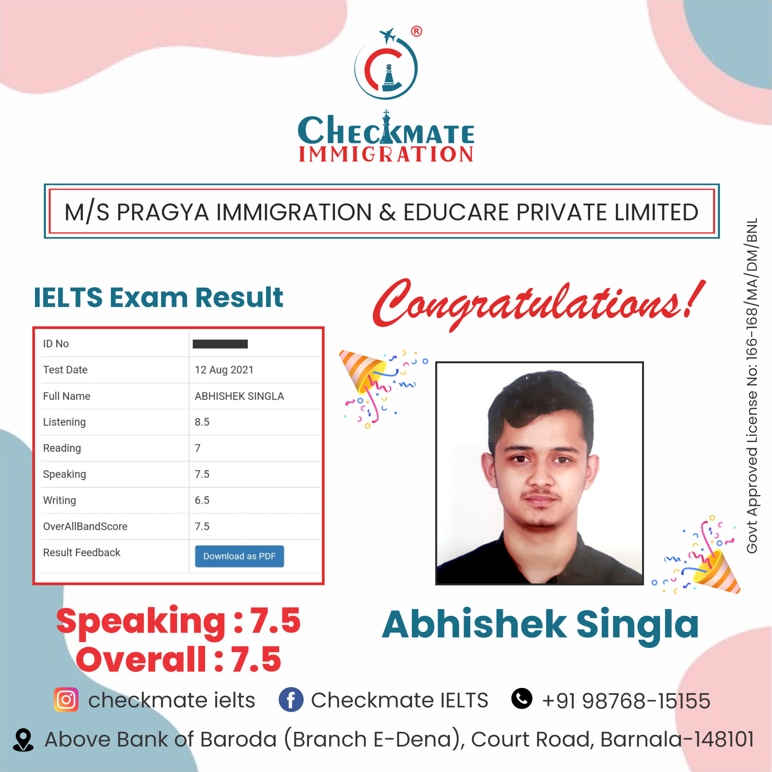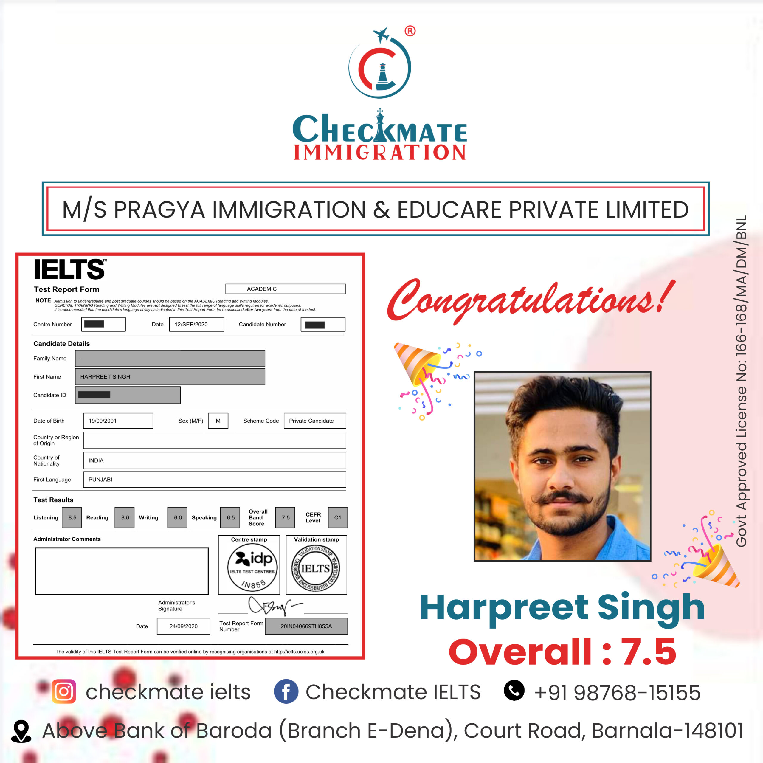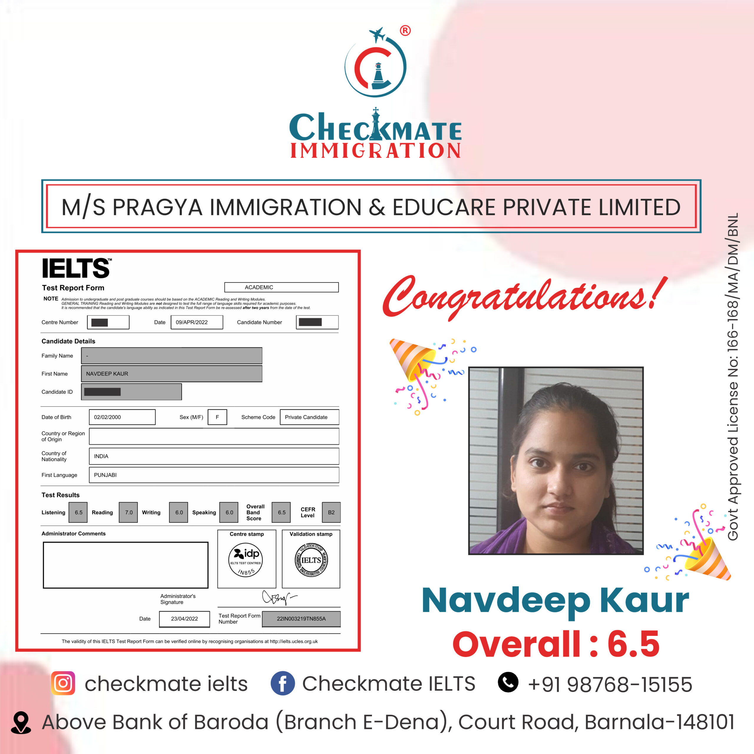 "Checkmate Immigration" is a registered trademark owned by our company. We are duly registered under the Punjab Travel Professional Regulation Act 2012 vide License No. 166-168. Further Govt of India, Department for Promotion of Industries and Internal Trade recognised us as Startup.