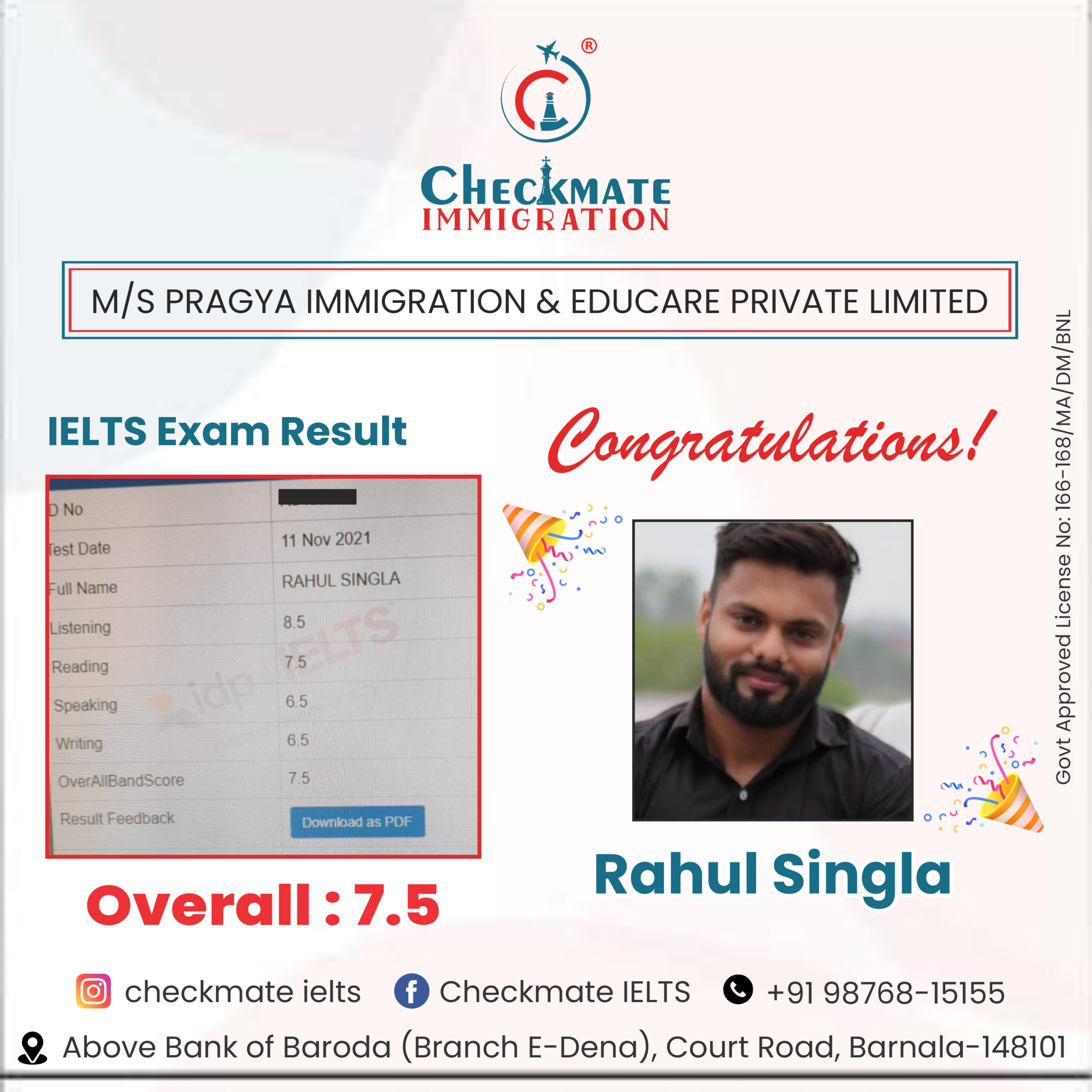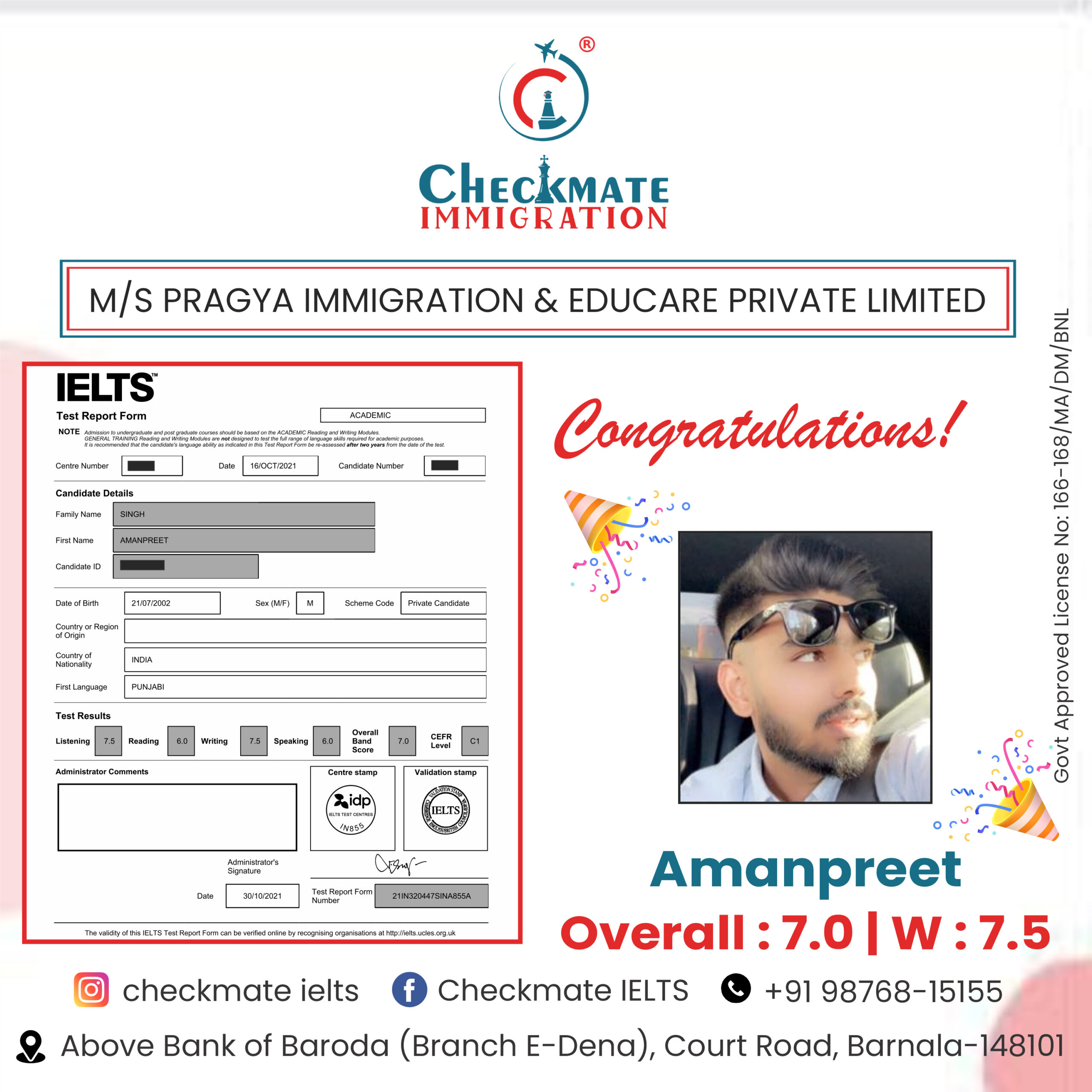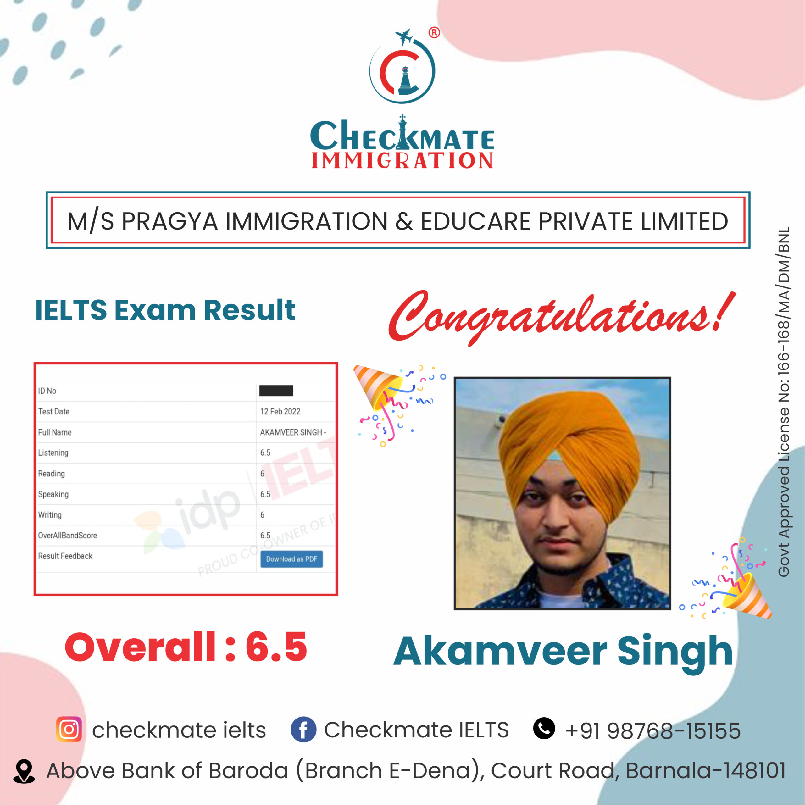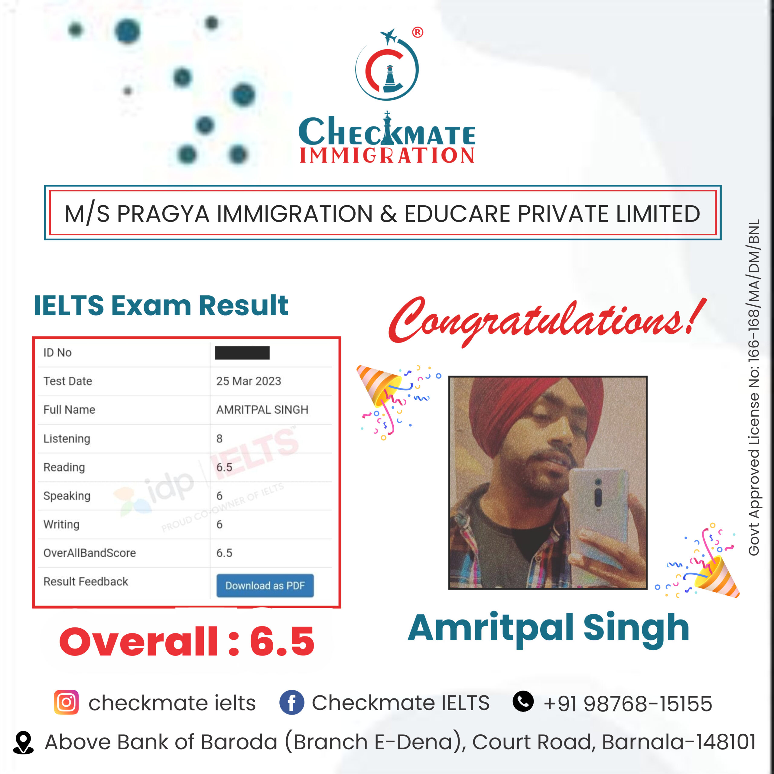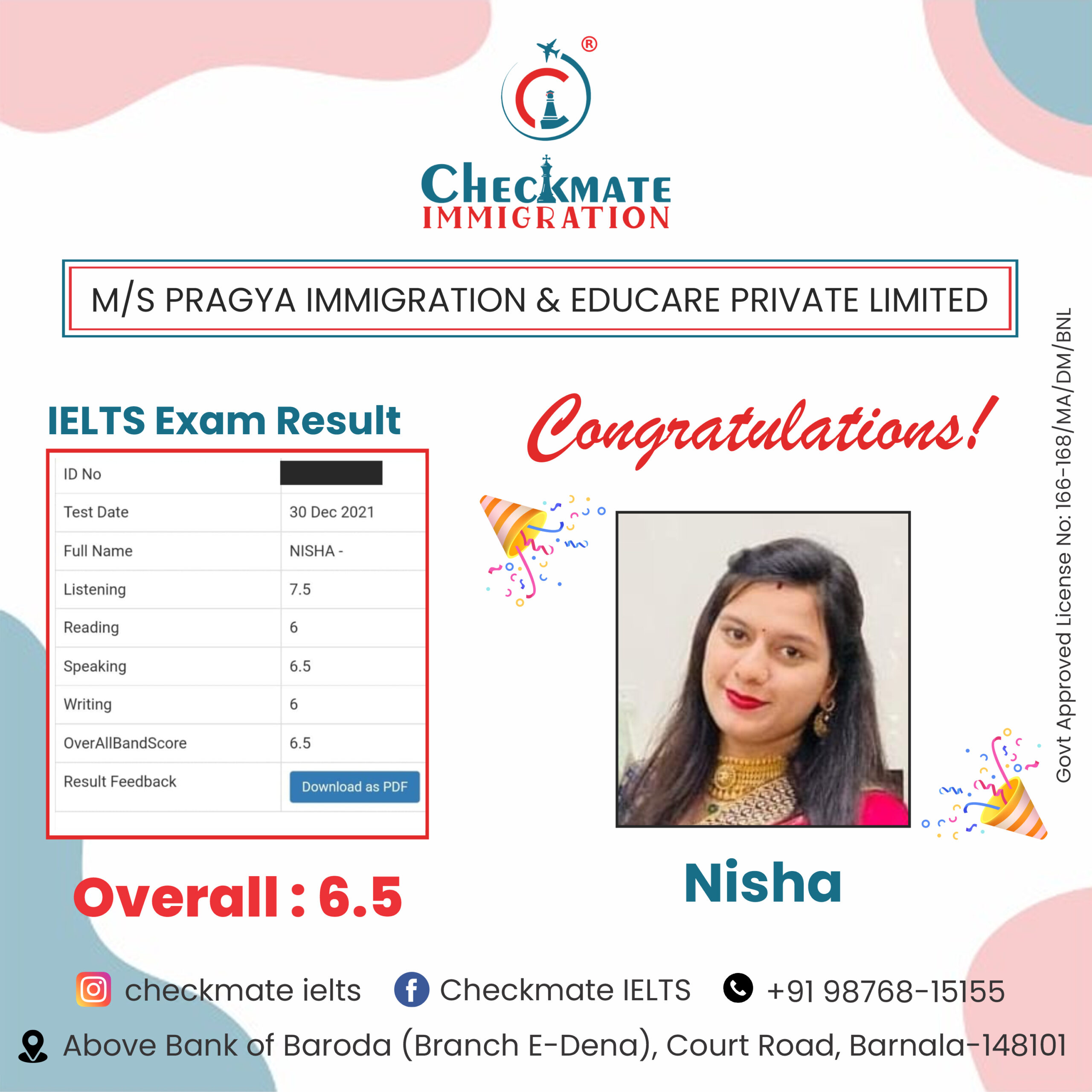 "Checkmate Immigration" is a registered trademark owned by our company. We are duly registered under the Punjab Travel Professional Regulation Act 2012 vide License No. 166-168. Further Govt of India, Department for Promotion of Industries and Internal Trade recognised us as Startup.