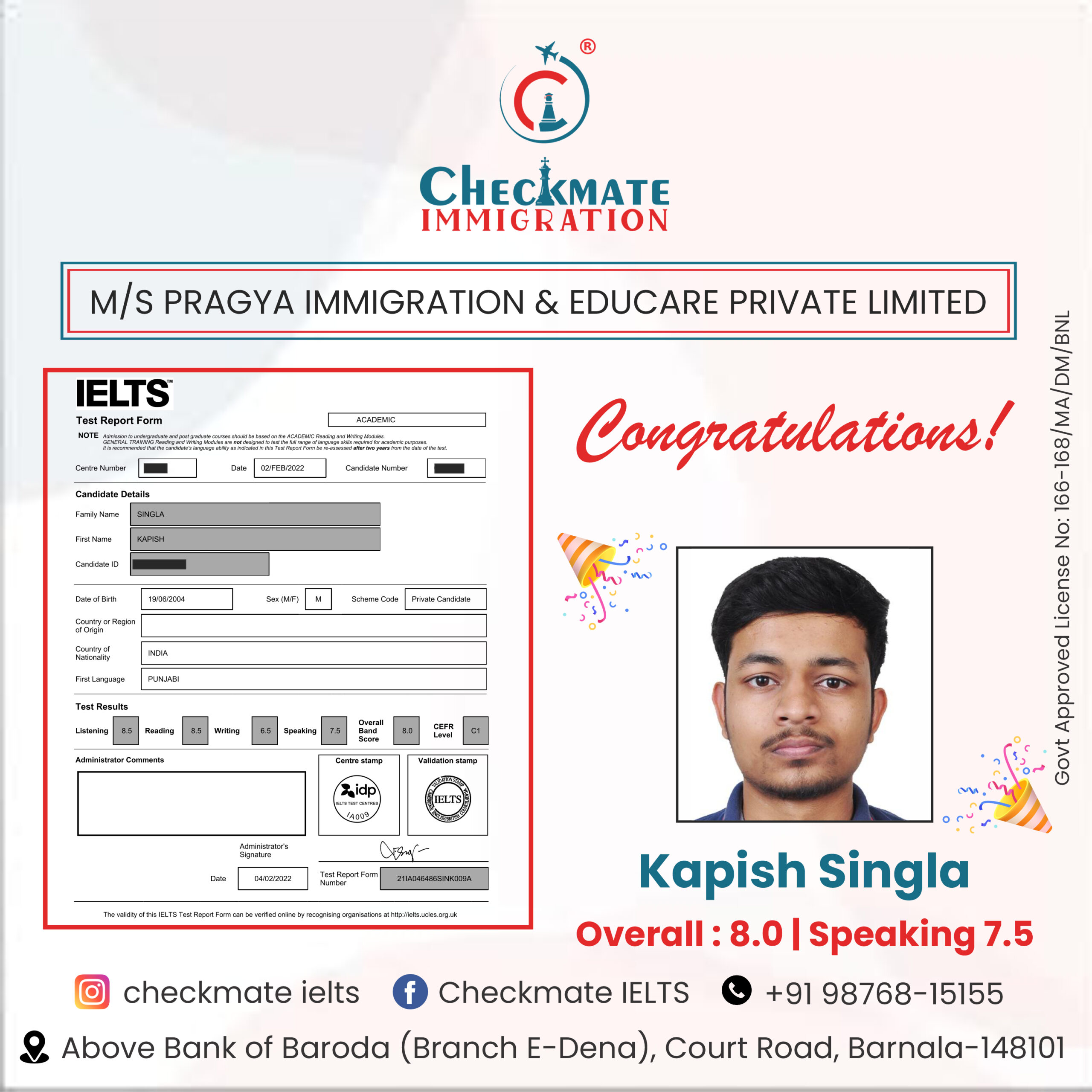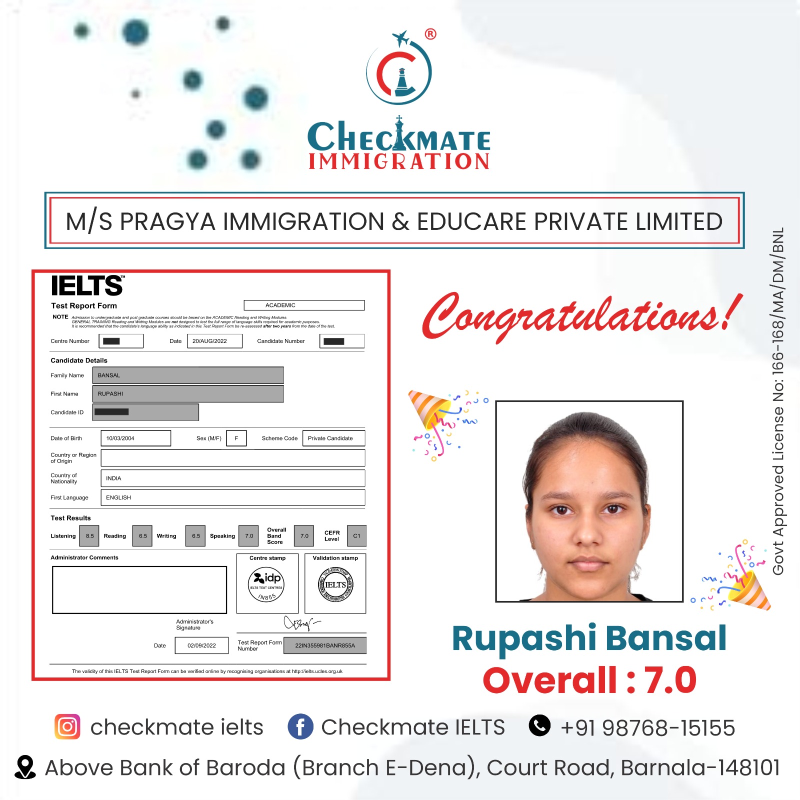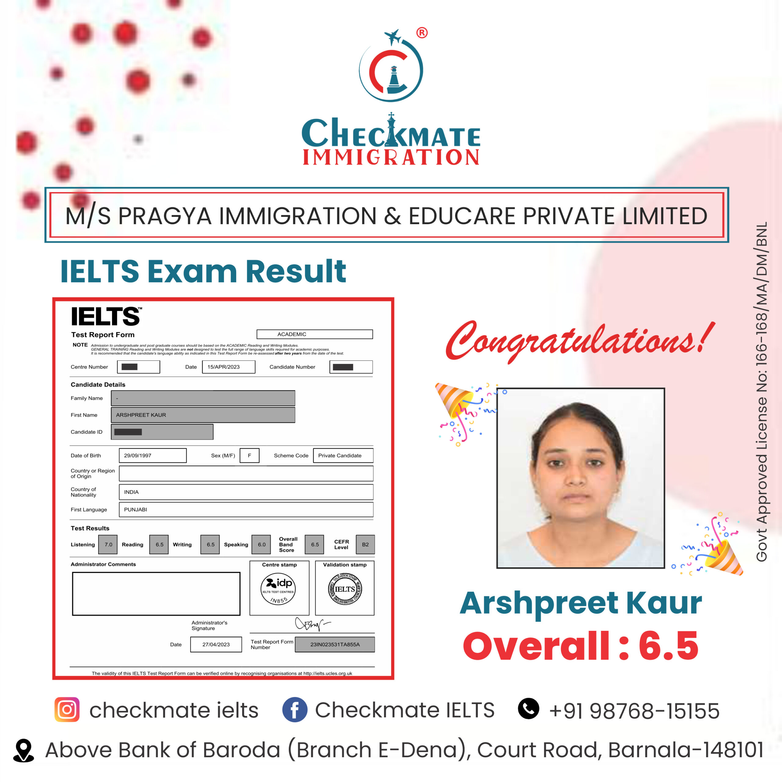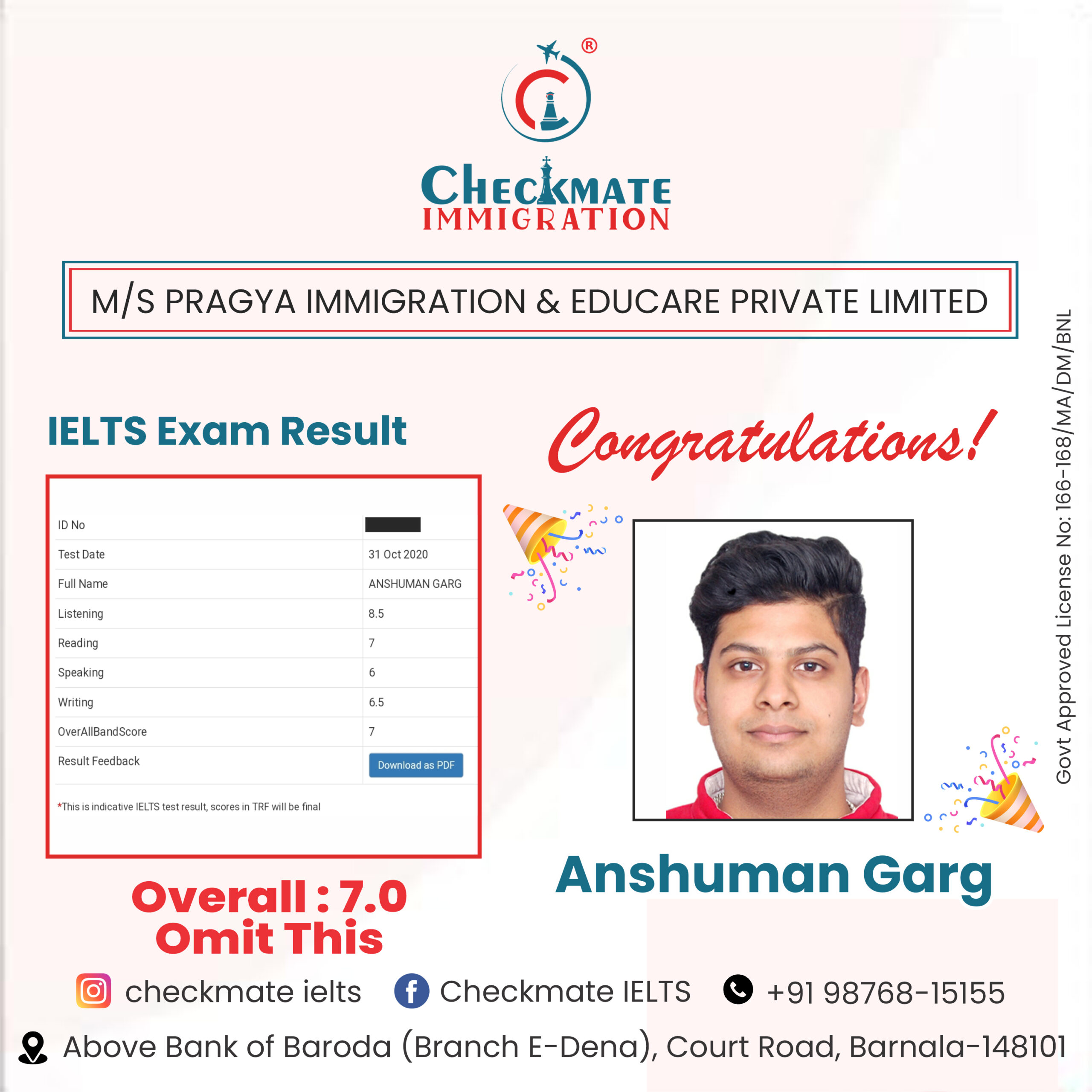 "Checkmate Immigration" is a registered trademark owned by our company. We are duly registered under the Punjab Travel Professional Regulation Act 2012 vide License No. 166-168. Further Govt of India, Department for Promotion of Industries and Internal Trade recognised us as Startup.