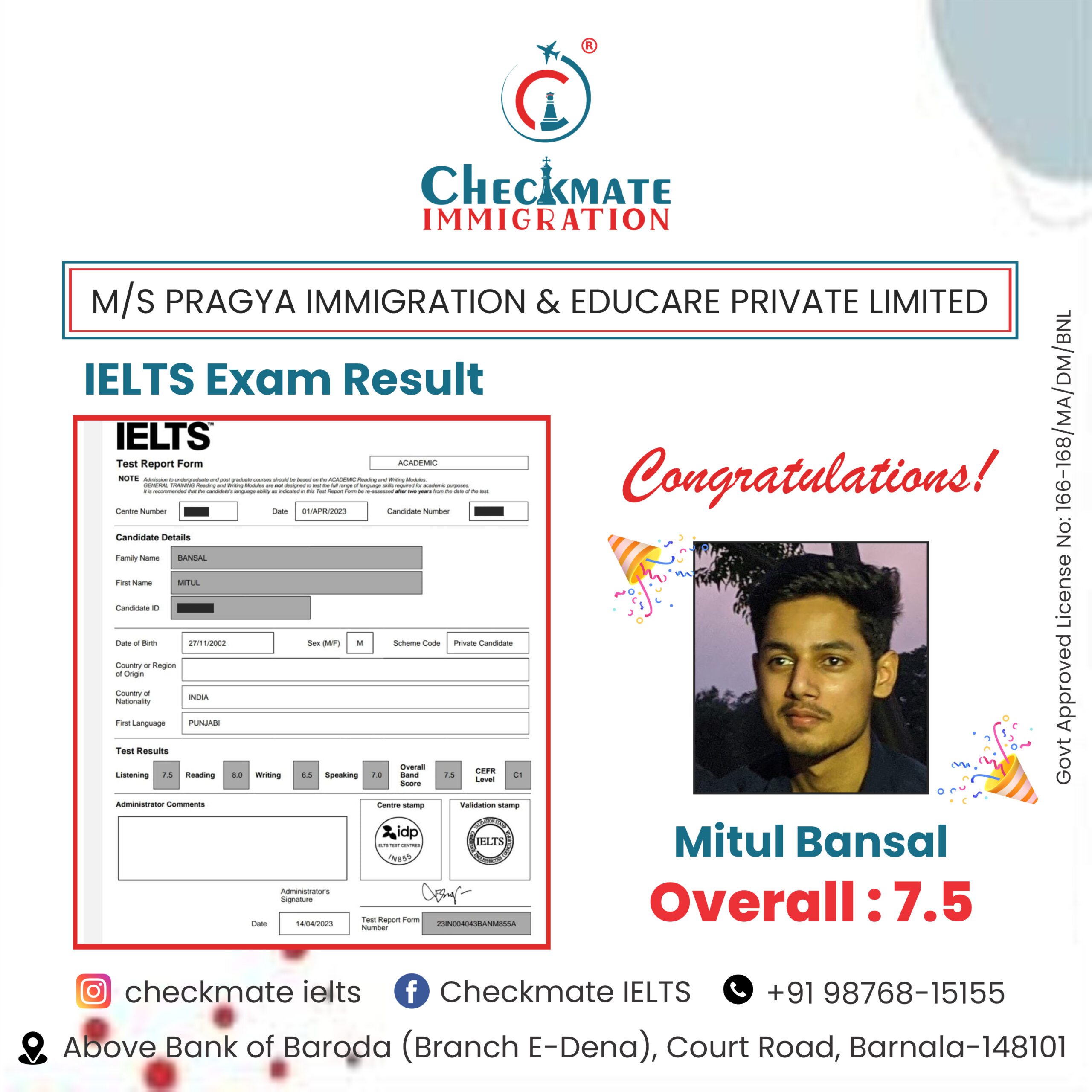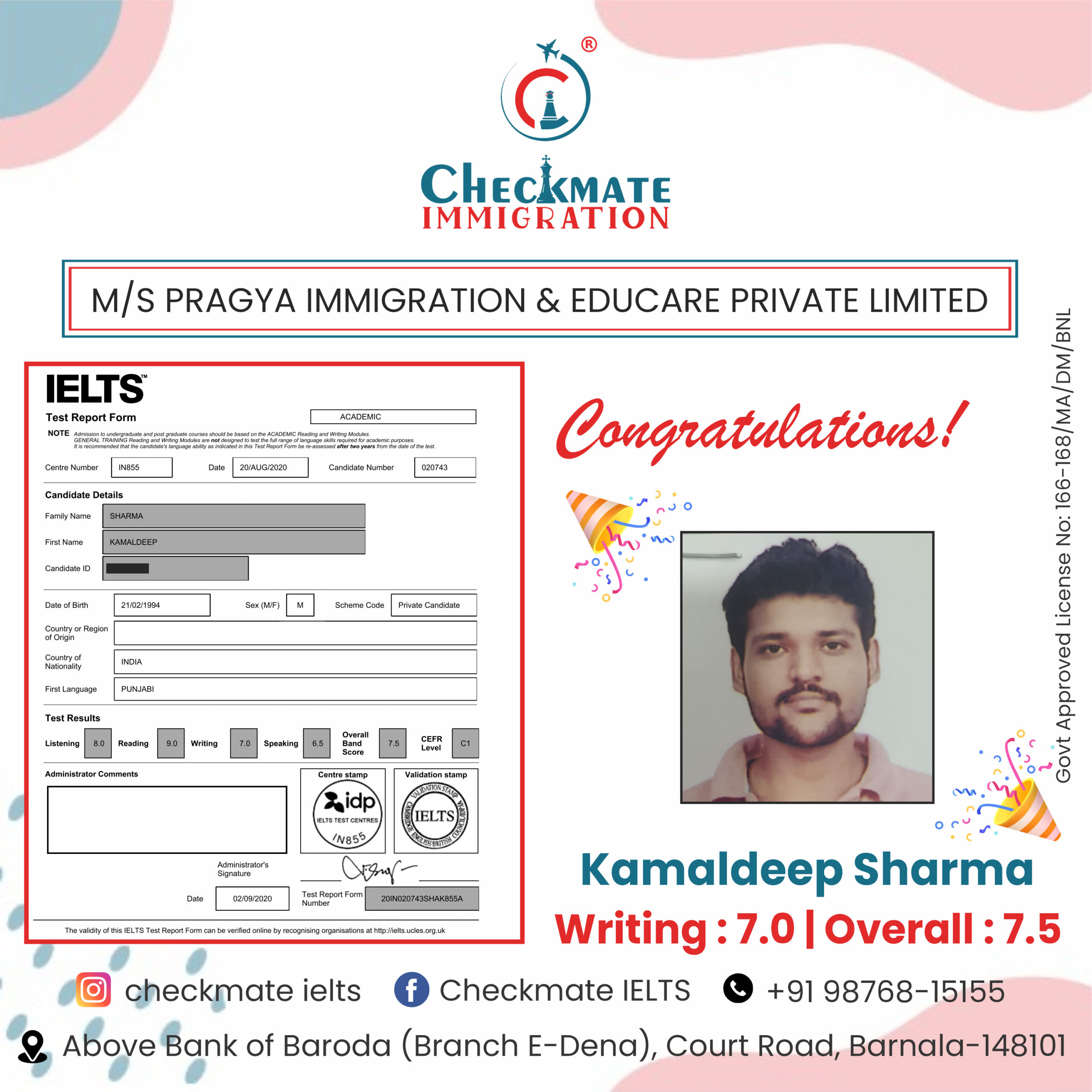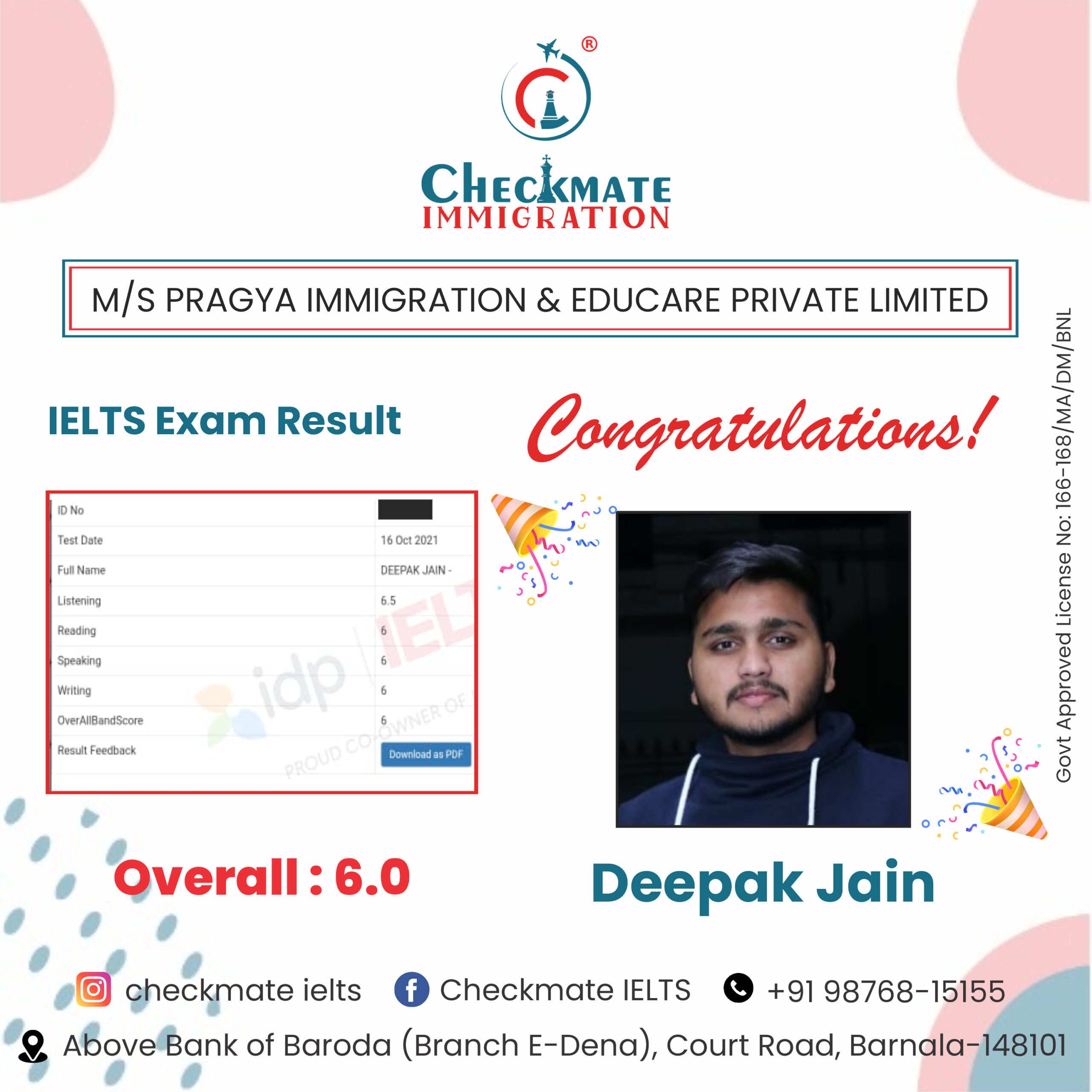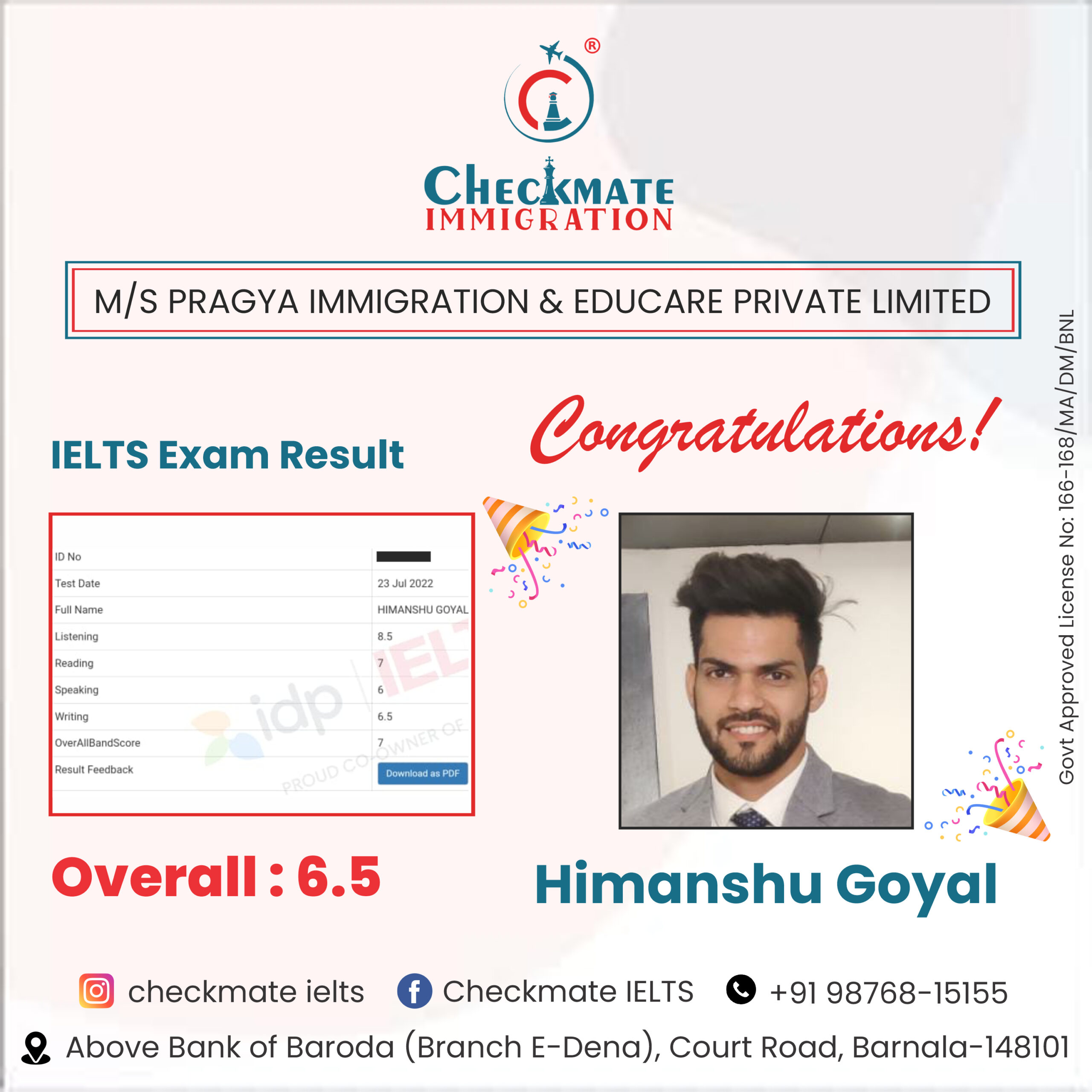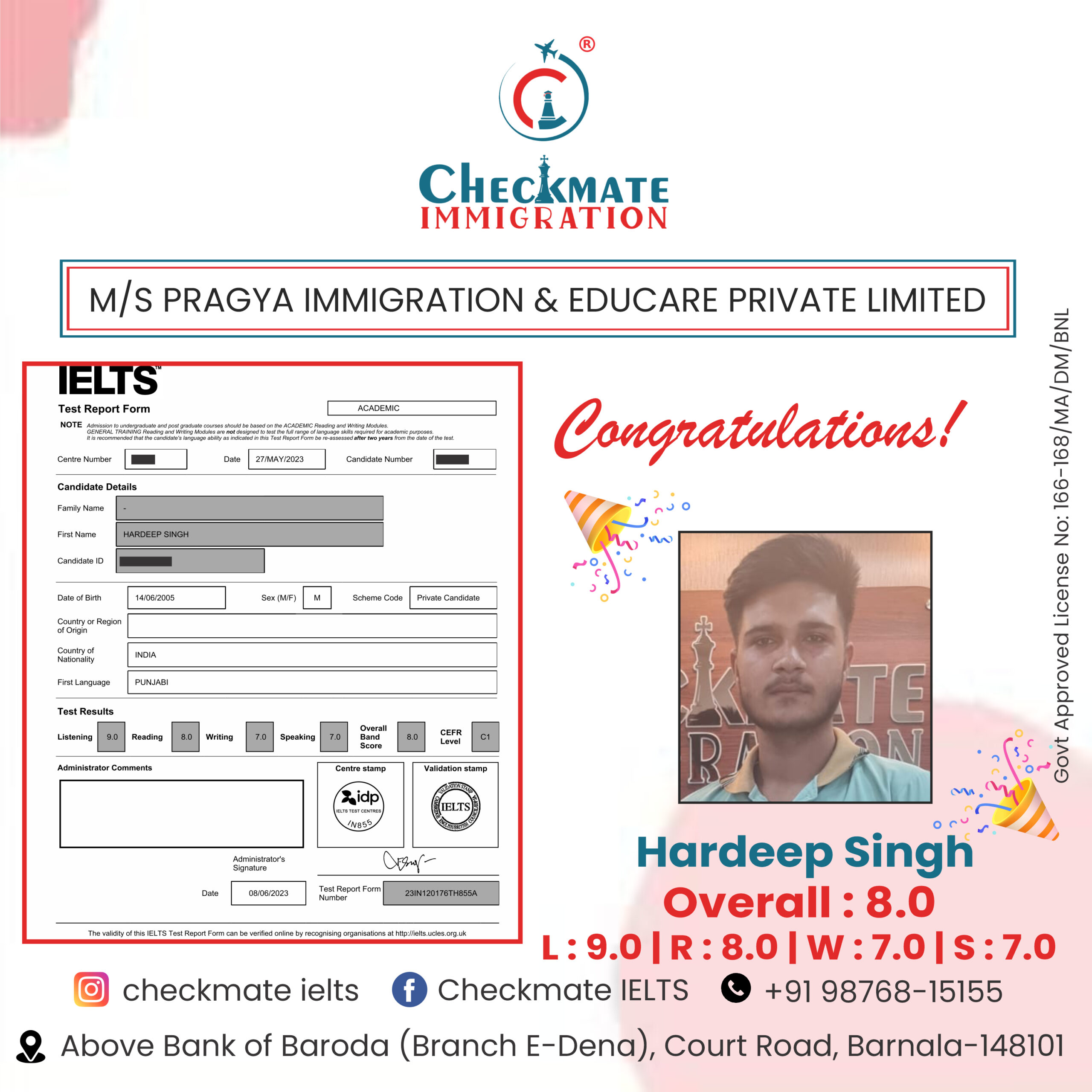 "Checkmate Immigration" is a registered trademark owned by our company. We are duly registered under the Punjab Travel Professional Regulation Act 2012 vide License No. 166-168. Further Govt of India, Department for Promotion of Industries and Internal Trade recognised us as Startup.